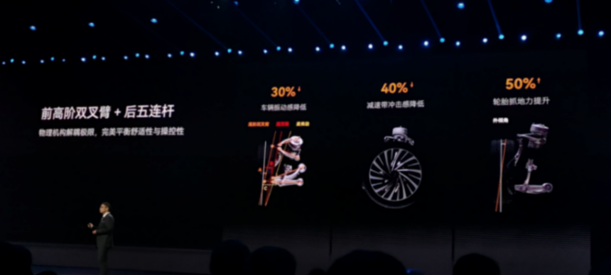 悬架方面,星纪元et采用的是全铝底盘和前双叉臂 后五连杆独立悬架结构,同时还配备了了ias智能空气悬架与cdc电磁减震系统,“硬件”方面的表现不错,配合辅助系统,能够智能预瞄前方路况,然后调整悬架高低与阻尼的软硬程度,保证驾乘的舒适性。