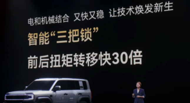 豹5将机械锁和电的能力结合起来。前后的牙签式机械锁的锁子稳定可靠,而电综所让前后的扭距转移比传统的中锁要快30倍。当电与机械发生碰撞,又快又稳。这也让豹5拥有了极强的脱困能力,可以轻松应对越野中的烂泥路。