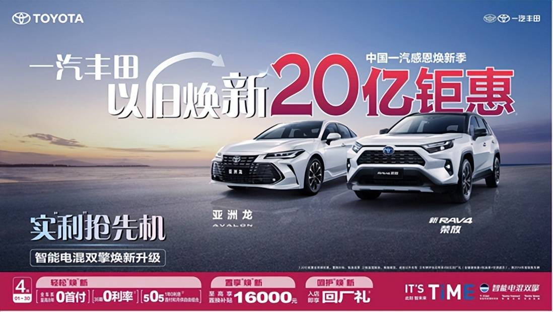 一汽丰田销量成绩的不断增长,与其始终紧跟国家政策,敏锐把握市场风向息息相关。近日,一汽丰田积极响应国家《推动大规模设备更新和消费品以旧换新行动方案》和《关于调整汽车贷款有关政策的通知》等新政举措,推出“以旧焕新20亿钜惠”活动,充分展现了头部车企的市场敏锐度和对消费者的诚意。