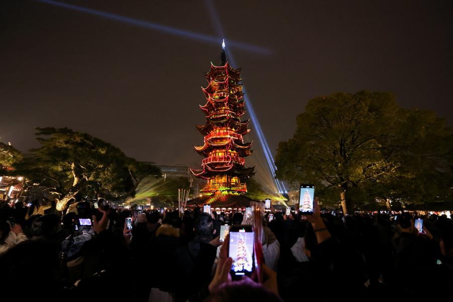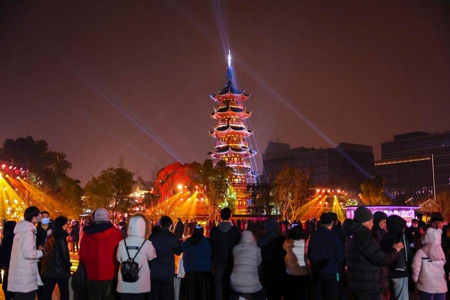 作为此次“新年第一游”的全新亮点,龙华塔光影秀以灯光、投影、音乐等多元形式,展现了“科技 文旅 古韵”跨界融合后的时代魅力。