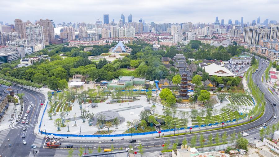 2021年6月,龙华广场正式向市民开放,作为龙陵周边环境综合整治工程的关键节点,首次充分打开了围绕龙华寺、龙华塔的城市立面。3个月后,龙华塔修缮工程基本完成,相较上世纪八九十年代的两次大修,此次修缮专门依照宋式塔的风格恢复了宝塔元素,塔顶宝瓶则再次贴上金箔,宝塔七层八角的56个风铎也完成修补替换,恢复最初的悠扬铃声。