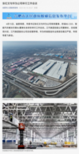 参加此次会谈的还包括江汽集团控股公司董事长、总经理项兴初,江汽集团股份公司总经理李明,华为终端智选车业务部总裁汪严旻,市领导袁飞等。