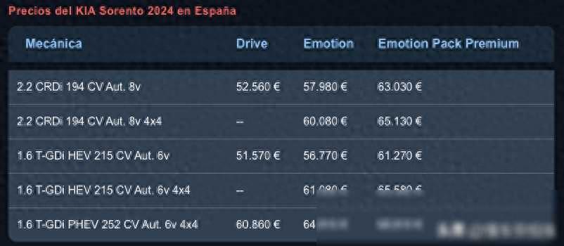 惊呆了!据最新消息,新索兰托在西班牙市场上的售价范围竟然从51570欧元到68810欧元不等!这简直就是天价啊!换算成人民币更是高达39.79万到53.09万元!这得卖肾才够买得起吧!