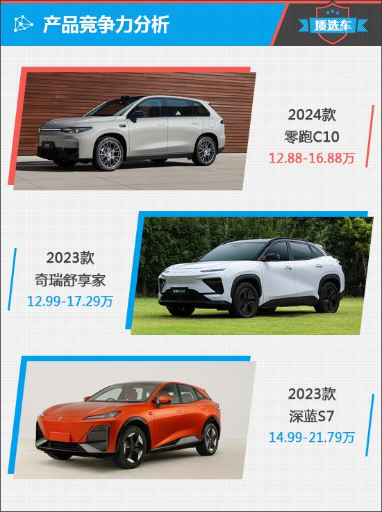 新能源中型suv市场非常火热,零跑c10要面临的竞争对手也都很有实力。其中奇瑞舒享家和深蓝s7就是比较有代表性的车型,都有自己独特的亮点,并且有着不错的市场表现。我们就将奇瑞舒享家和深蓝s7列为竞争对手,看看零跑c10能否与之抗衡。