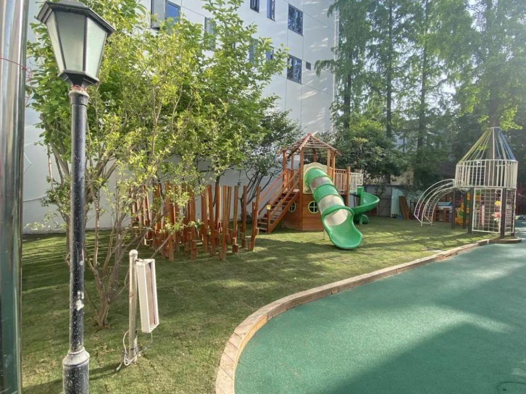 沿幼儿园一侧建筑立面,在改造方案的设计和施工过程中,充分考虑保护幼儿园儿童安全与隐私、增强视觉效果等因素,对外立面空调外机进行移除;减少开窗面积,仅预留了满足消防排烟、通风等要求的功能性窗;立面涂料选用无机涂料等环保材料,避免后续高空坠物等安全隐患,提高幼儿园师生日常教学的安全性、隐私性。