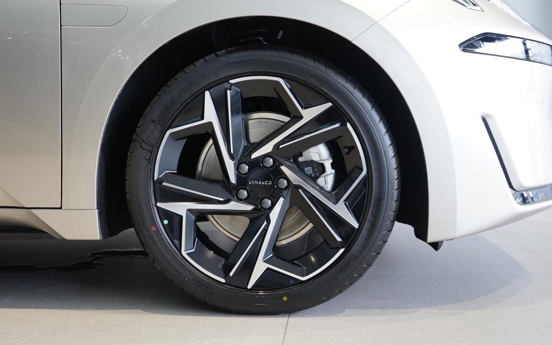 19英寸双色轮圈造型有运动感,轮胎尺寸为245/40 r19,胎宽充足,胎壁较薄,我们估计量产车轮胎不会这么运动。匹配固特异electricdrive电动车专用胎,抓地性能出色,还有不错的静音效果。