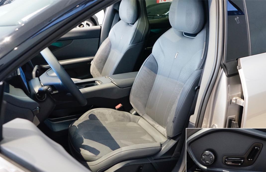 座椅材质是nappa真皮,一体式运动造型有前凸的头枕,保证颈部支撑到位。填充物厚实有弹性,坐垫长度充足,靠背与坐垫的侧向支撑都很充分,还采用麂皮材质,保证激烈驾驶时身体的稳定性。功能也很丰富,有通风、加热、按摩和记忆,头枕集成音响单元,可以播放导航播报和音乐。