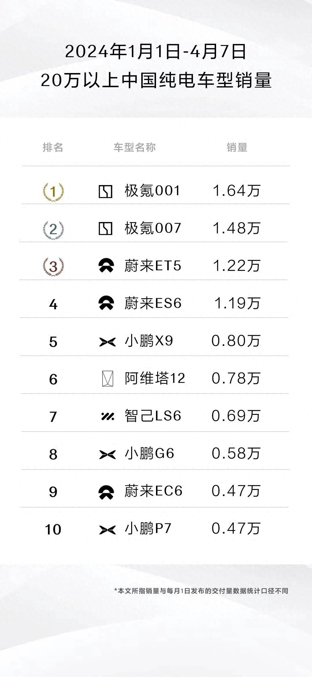 从整体来看,极氪001并没有明显的短板,无论是颜值、智能还是驾控性能都非常在线。而截止到4月7日,今年极氪001的累计销量已经达到1.64万辆,这个销量成绩也代表了消费者对极氪001的认可。不过接下来极氪001会面临更多小米su7这样热门车型的挑战,那么它能否保持住销量领先的地位?让我们拭目以待。