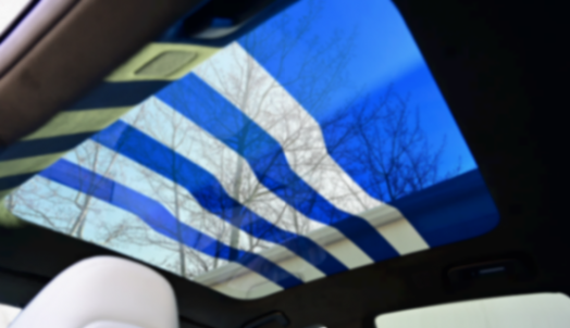 另外,极氪001的这块天幕也比较有意思,除了阻隔紫外线和隔热等基本功能之外,还具备分区调节功能,比如上图这种彩条形的天幕就能轻松实现。