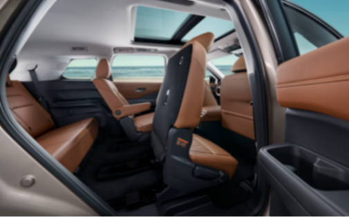探陆的长宽高分别为 5130/1981/1767mm,轴距为 2900mm,比汉兰达和福特锐界都大,其采用了6座/7座宽敞布局,三排都是大沙发,保证了每个座位的舒适度,完美适配多孩家庭。为了方便进出第三排,探陆设计了238mm宽的人性化中央通道,并且配置了第三排“一键进入”功能,大大节省了家人进入第三排的时间。