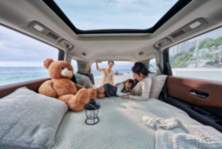 为应对日常更多的用车场景,探陆提供了多种空间组合模式。比如二三排可以同时放倒,纵深可达2m,外出露营铺一个充气床垫,即刻变身大床房,一家人玩累了可以躺在后座休息;如果多人出行,为了节省空间,探陆二排、三排可以同边各放倒 1 个座椅,这样可以放下 2 米长的钓鱼、桨板、自行车等装备,解锁更多的户外活动。