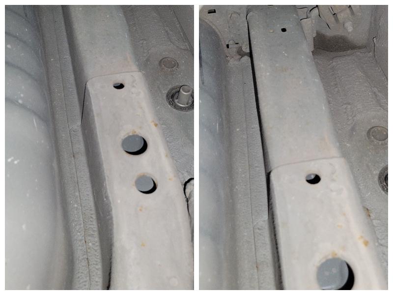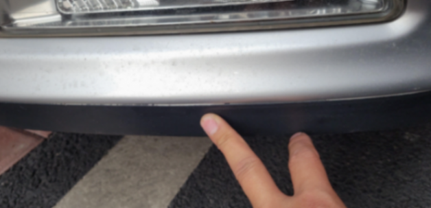 现在可以看到的就是前杠有喷漆的痕迹,边缘有很明显的毛刺。