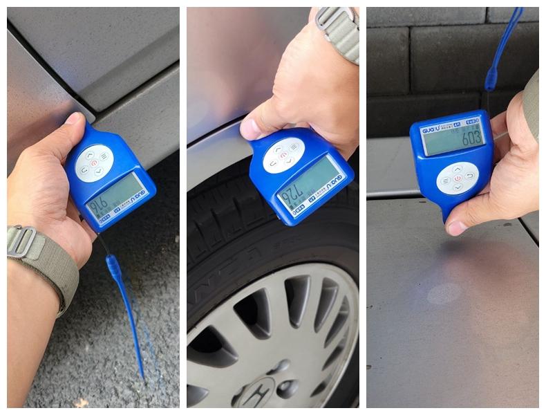 左前门、右后翼子板还有右后门这几个面有钣金腻子修复的痕迹 ,其它的金属面都是原装的漆面,20年的车了,难得可以保持这个车况。