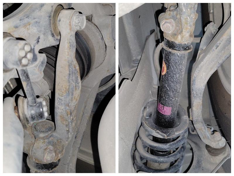 悬挂方面发现除了减震器有更换的情况之外其它的球头胶套都没有破损、渗油的异常情况。