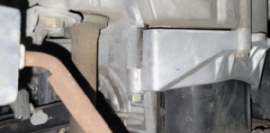 发变连接处这里有一块看着很新的东西是后期更换的,可以明显的看得出它跟变速箱的壳体色差比较大的。