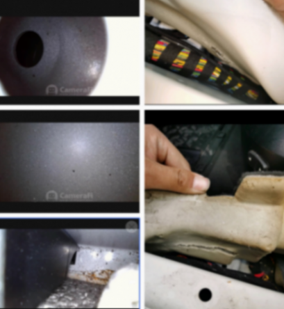 拆开主四门门槛内饰板,使用内窥镜查看内部空腔,未发现任何水痕及泥沙沉积现象;左侧前地毯有水痕,但右侧地毯没有,看来之前主驾有可能进过水,但量一定不多,也有可能是打翻水杯之内的情况造成的;主驾座椅没有拆卸,转向管柱也没有生锈的迹象。