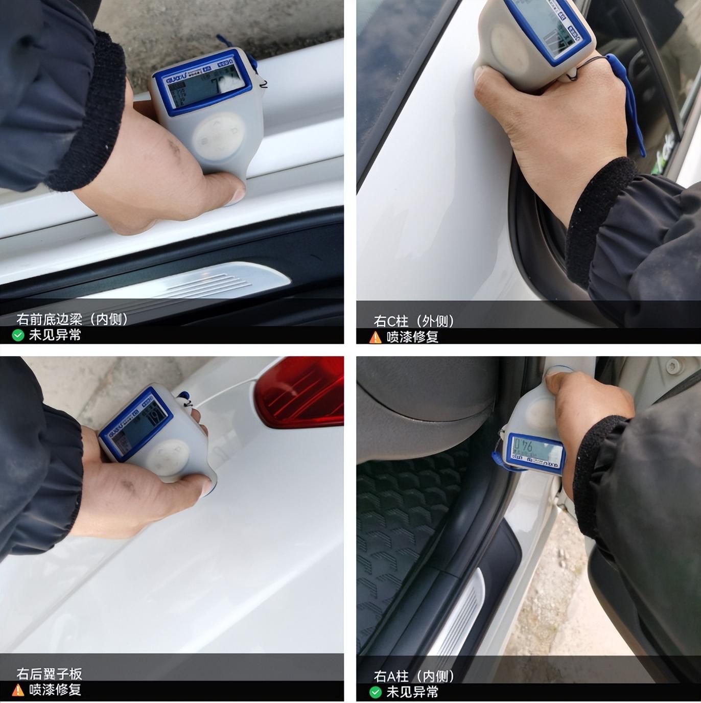 检测右侧右后翼子板有喷漆,但没有钣金,右c柱内侧数值正常,右底边梁内侧数值正常,右a柱外侧有喷漆,但内侧正常。综合来看右侧也可以排除存在重大事故的可能性。