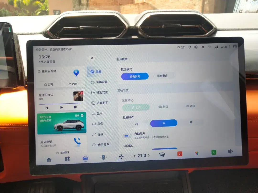 在能源模式上可选择纯电优先及混动模式,而驾驶模式上则分别提供经济、舒适及运动,且能量回收模式也分弱、中、强;转向助力分别有舒适、标准及运动,供驾驶者多种组合选择。实际体验,东风风神l7整体的行驶质感几乎与纯电动没什么区别,特别是纯电优先模式下,其初段加速十分线性,它并不会刻意去追求过于激进的表现,它很照顾乘坐舒适性,太突兀的提速感,会容易让座乘人员出现晕车。