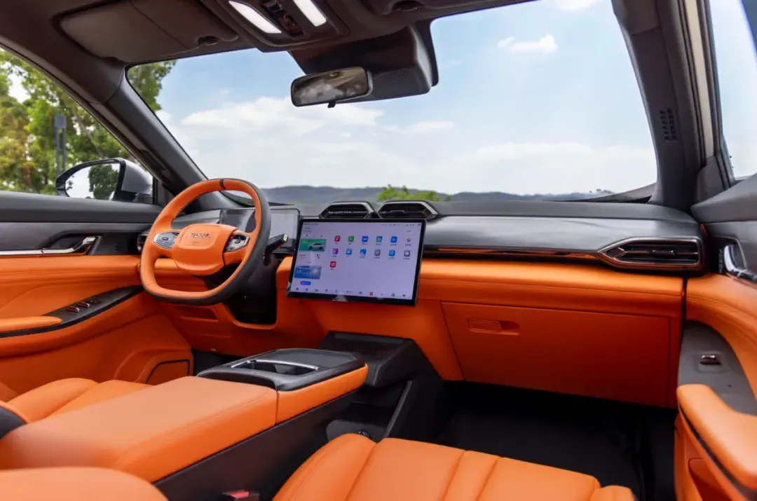 进入到座舱,就立刻被它大胆的橙黑配色吸引,可以说是非常贴合年轻消费者的口味。此外,东风风神l7全系配备了14.6英寸全液晶仪表和10.25英寸触控大屏,全系车型内置高通8155芯片,搭载着windlink os 3.0智能座舱,提供了高效便捷的交互和丰富的娱乐功能,其中,基于科大讯飞语音识别的智能语音助手支持毫秒级响应速度、“可见即可说”以及10秒8条连续指令。
