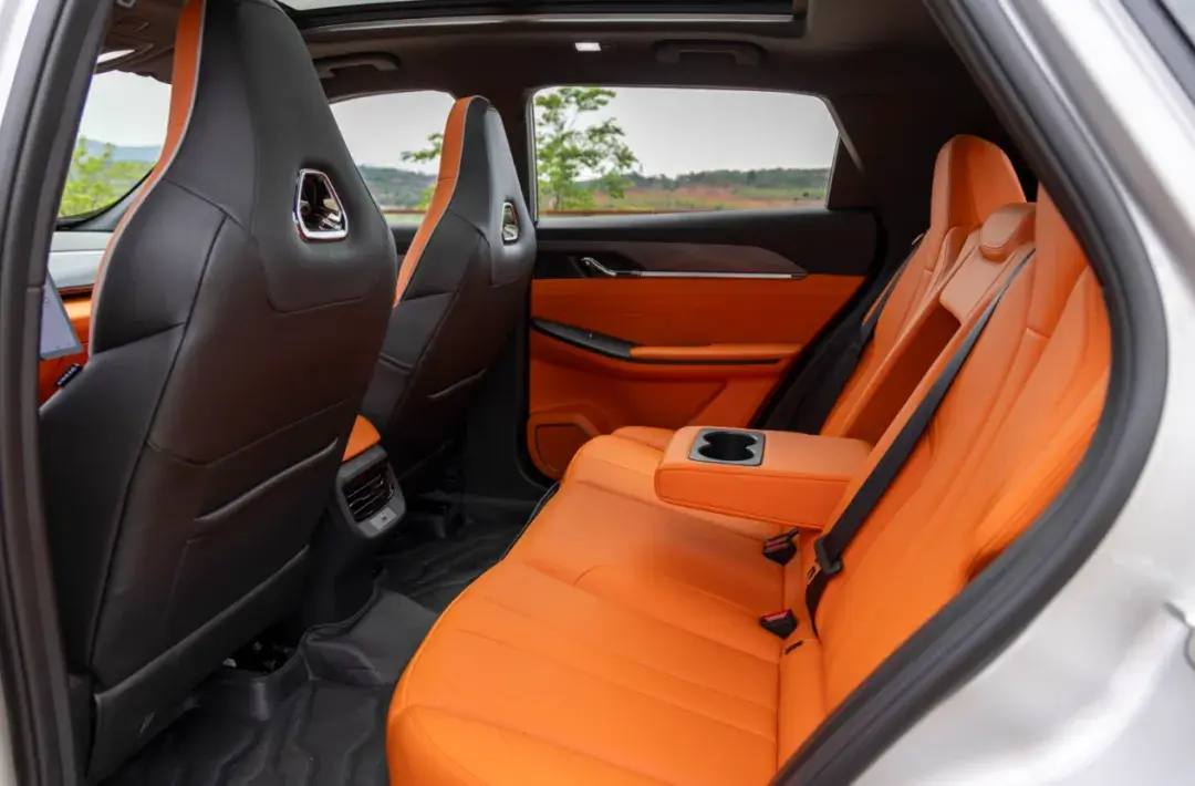 侧面的车身腰线贯穿前后,再加上双拼色的设计,呈现出不错的视觉效果,再加上d柱独特的设计,看上去还有点小掀背的既视感。同时,新车采用着隐藏式门把手设计,充电口则设置在右后翼子板区域。车身尺寸方面,新车长宽高分别为4685mm*1905mm*1625mm,轴距为2775mm。后排实际体验,头部及腿部均留有非常富裕的空间,且中间地台也是纯平的,后排坐垫要是再稍微长一点的话,那就会有更好的乘坐体验。