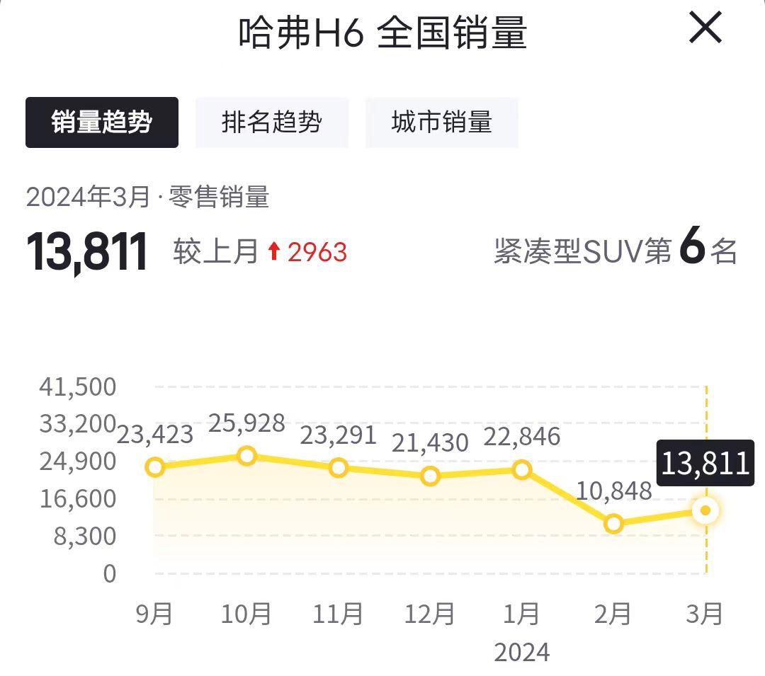 哈弗h6可以说是哈弗品牌甚至是整个长城汽车绝对的销量主力,自2011年推出至今累计销量已超过400万辆,曾累计103个月获得国产suv销量排名第一。不过随着同级别竞争对手的增多,以及新能源车型的快速发展,这款车如今的销量相比之前下滑不少。