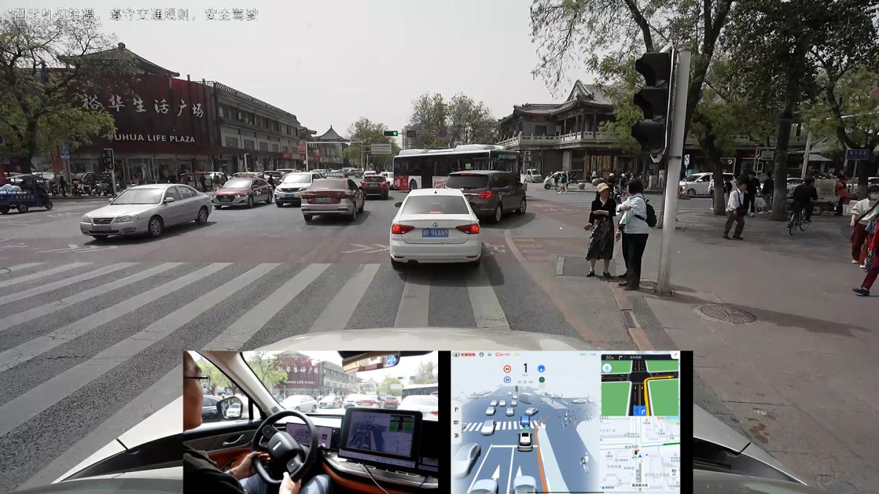 当魏建军驾驶蓝山dht-phev来到十字路口时,长城汽车全场景noa通过准确识别标准及各类非标准红绿灯,确保在各种路口安全可靠地通行。据悉,这套系统最远识别距离可达150米,无论是标准路口还是特殊路口,转向成功率超过95%,尽最大可能在复杂的人车混流环境中,让车辆安全平稳通过。