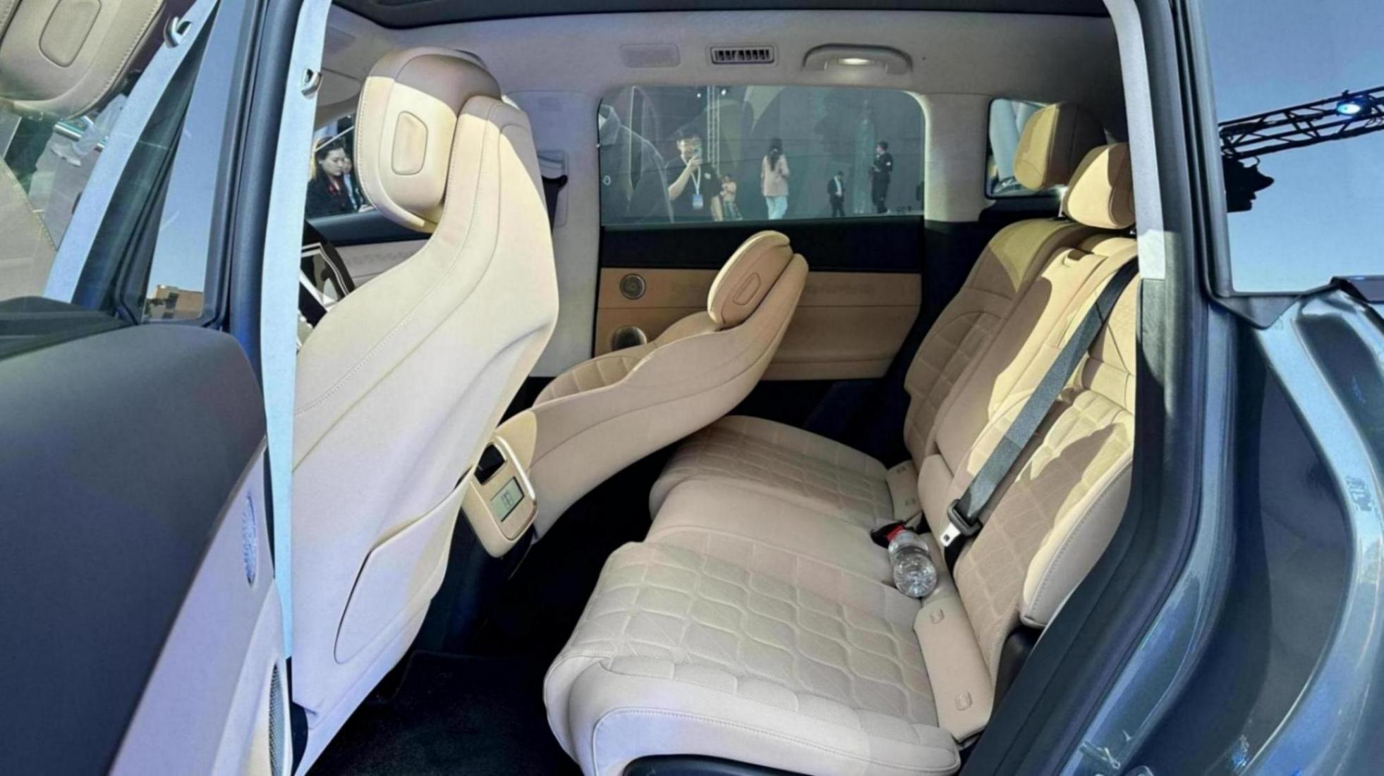 我在现场也静态体验了实车,首先外观是个显眼包,前包围两侧有可定义的数显图区。内饰大面积的软质包裹让人印象深刻,舒适座椅采用nuprima 微绒哑光真皮,搭配超宽豪华音响头枕、16向电动浮感零重力副驾座椅,后排座椅则支持四向电动调节。