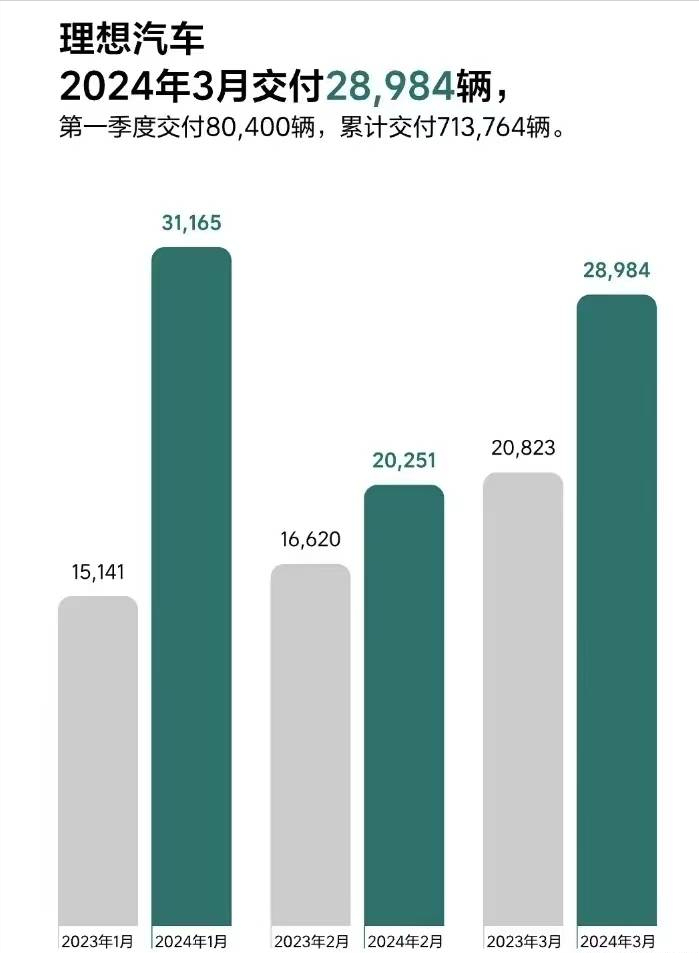 理想汽车3月份交付28984辆,1-3月累计销售80400辆,累计交付超过71.3万辆。凭借增程式技术和奶爸车形象,理想汽车在市场上取得的成绩相当瞩目。理想mega 3月销量仅3229辆不及预期,也让理想重新将重心移到主推增程混动的l系列上。