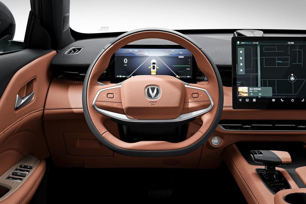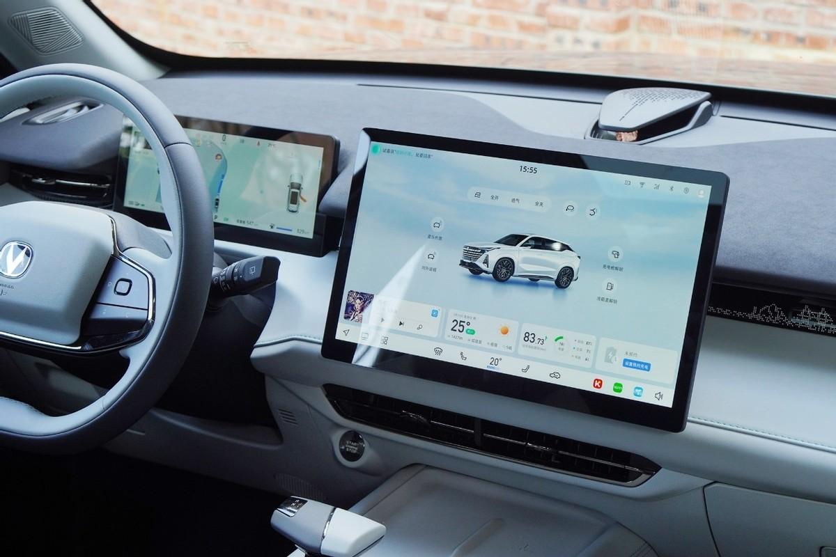 车内整体非常简洁,采用10.25英寸液晶仪表和14.6英寸高清中控屏的组合,两块屏幕之间可以进行联动。值得一提的是,中控屏前方设计了反应堆式数字生命氛围灯,呼吸灯光效果可与驾驶模式联动,跟随音乐闪烁,很有科技感。