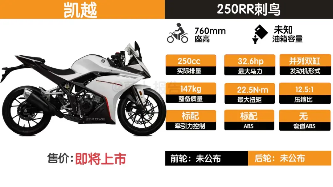 最近凯越亮相了一款新车250rr刺鸟,虽说正式售价尚未发布。但凭借其出色的硬件配置,已经吸引了很多车友的关注。