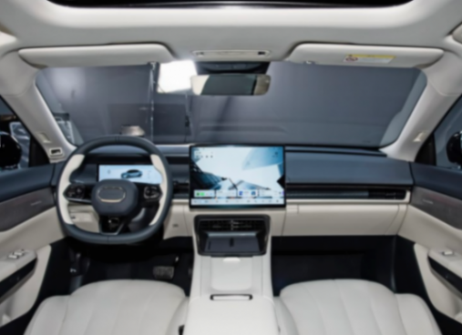 再来便是它的内饰,领克07 em-p的内饰布局简约且不失高级。长方形的12.3英寸全液晶仪表盘和15.4英寸中控屏幕,具备了2.5k分辨率,车机系统搭载的是lynk flyme auto魅族。配置方面新车则提供了nappa真皮材质座椅,四座都支持加热,按摩,通风等功能。