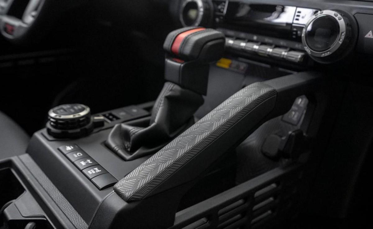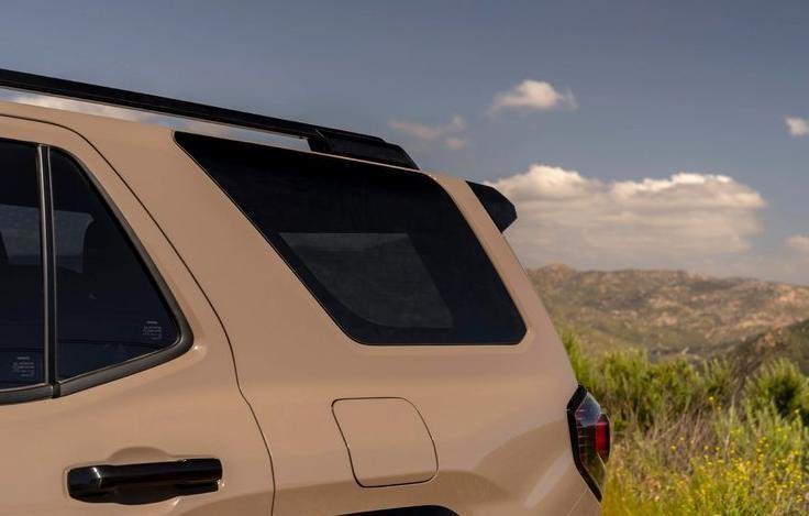 至于车尾,对称式c型尾灯采用熏黑处理,方正的车尾线条和前后外扩的轮拱设计让人感受到了力量感。在细节上,新车还采用了斜置c 柱设计,配合长悬设计,以及银色后保险杠凹槽造型,展现出丰田硬派越野车的专属风格。此外,新车尾部还配备了可滑动开启电动升降尾窗,日常使用方便拿取后备箱物品。