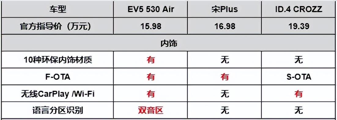 起亚ev5还搭载了全景天窗、智能感应电动尾门、前排座椅加热等诸多舒适性配置,在智能化这一块也没有落后于现有的国产车型,而同样作为合资车的id.4 crozz确实没有这么给力,全景天窗需要选装且缺席前排座椅加热,在价格保持高度一致甚至是略贵一些的前提下,起亚ev5诚意自然更足。值得一提的是,三车对比中,起亚ev5独有的智能感应电动尾门能让我们平时采购大件用品或是不方便开尾门的时候提供到更便捷的用车体验,哪怕是对比同价位宋plus ev,起亚ev5也更胜一筹,让一直以配置见长的国产车也没了优势。