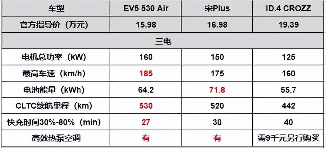 总结:虽说价格相当,起亚ev5还是带来了诸多亮点,无论是续航里程还是空间实用性,都更能满足用户的较高要求,所以手握15万预算想买纯电动suv代步,单单就续航来看,大众id.4 crozz就不如起亚ev5合适。论配置享受,宋plus ev也没有完全占据上风,综合来看起亚ev5性价比最佳,所以说合资纯电车也好像追上来了