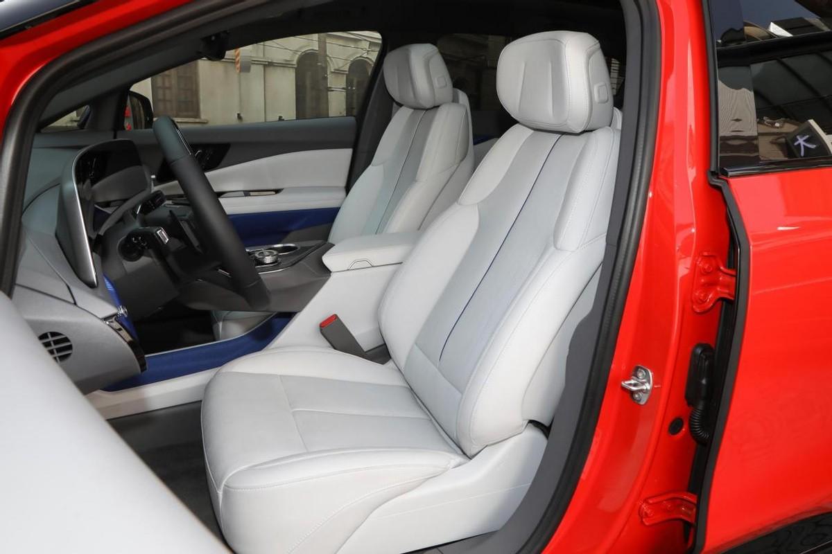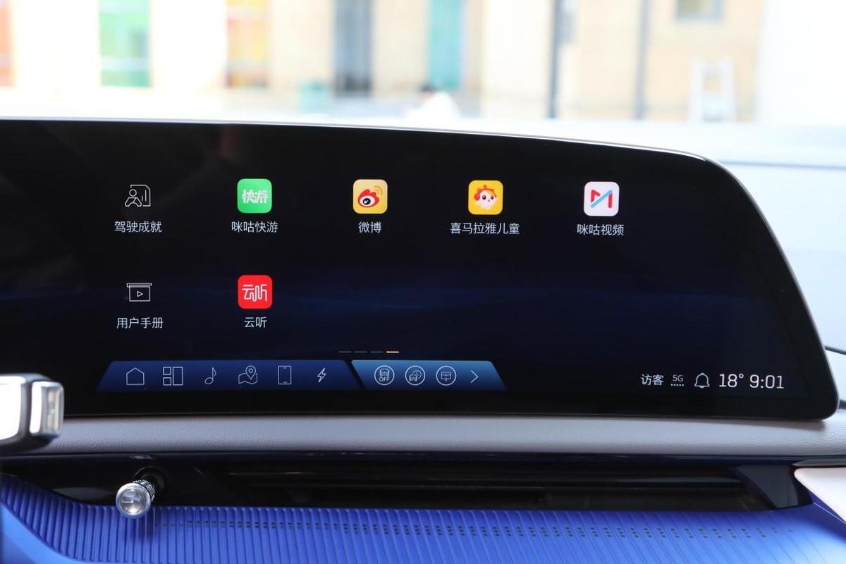 进入到驾驶舱,大控制面板的双辐式方向盘操作更便捷,而整体依旧带有重心偏转的中控台,无论是33.0英寸一体式曲面屏,还是下方带金属的空调控制台等等,在易用性、便捷性方面都处理得比较得当。此外,座舱装饰上的材料混搭、撞色以及纹理都会比较丰富,对应三种不同配色方案的蓝色点缀,会让这里看上去更年轻化。