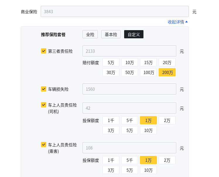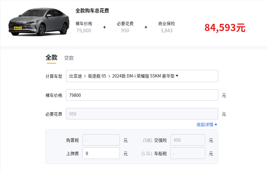 在保险费用方面,我们通过交强险和商业险两类来计算,为统一标准进行计算,我们参考懂车帝购车计算为准。