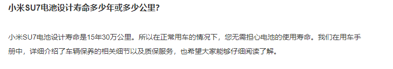但问题是,小米说自己寿命有 15 年,那你质保为啥还是 8 年 / 16 万公里?