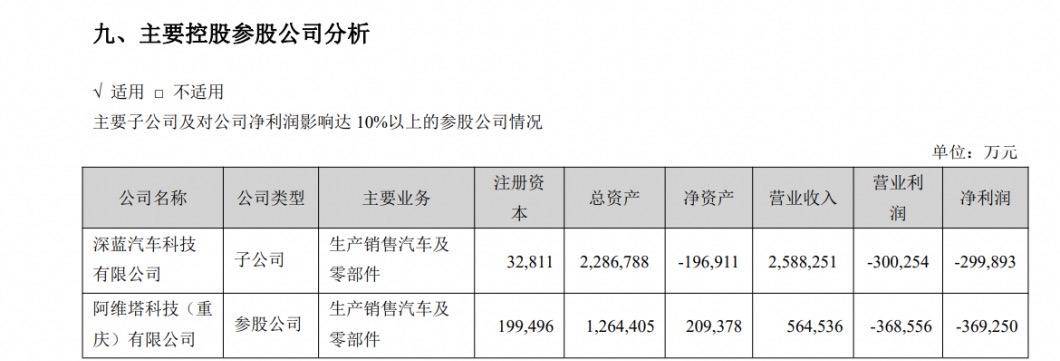 2023年财报中,长安汽车还披露了深蓝汽车及阿维塔去年的营收、利润情况。