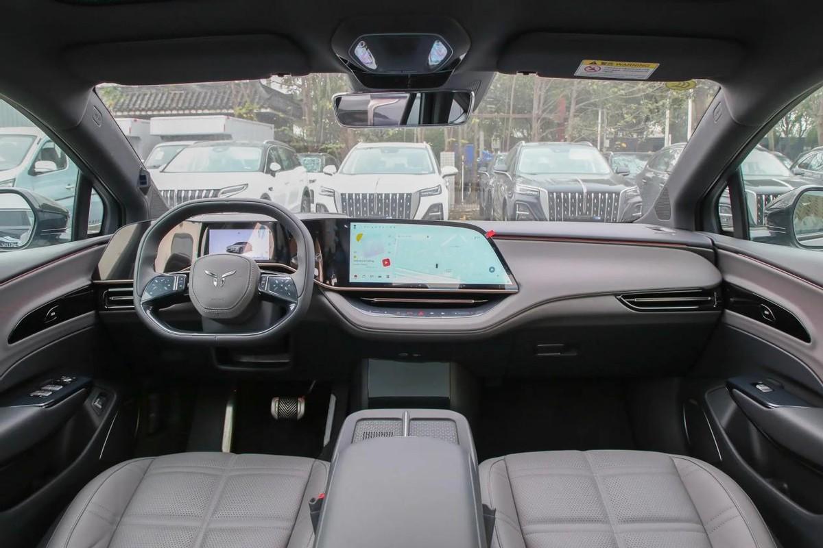 红旗eh7的内饰设计感很强,双联屏和双辐式多边形方向盘的设计都比较大胆,中控台上也带有微笑曲线设计,具备不错的艺术气息。车内大面积的软性材质搭配效果不错的氛围灯,带来了不俗的高级感。