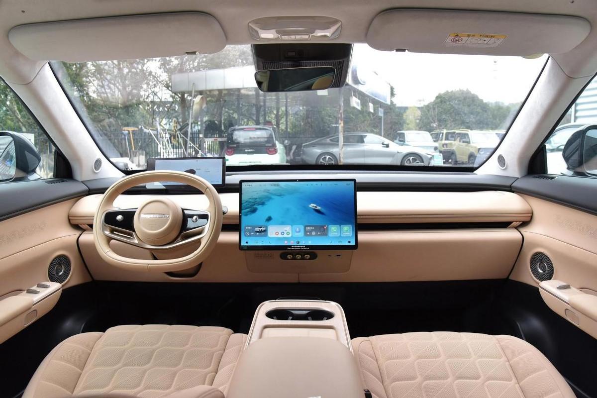 星纪元et的内饰也很“新能源”,双辐式方向盘采用d型样式,并提供滚轮 触控的操作方式,既不遮挡前端悬浮布局的10.25英寸仪表盘,也能提供不错的抓握转向把控。而中控台上则采用了支撑悬浮的15.6英寸2.5k触控屏,并布局了简洁的空调快速控制器,而type-c等外源接口则直接嵌入到了副板之中,与空调出风口一样实现了隐藏式平整布局。在这极简的中控方面,星纪元et倒是有点儿特斯拉的味道。