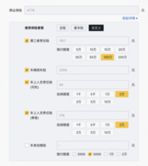 主要项目包含车船税、交强险以及基本商业保险,其中,车船税为固定每年350元、交强险为首年950元,而商业保险则包含了100万第三者责任险、车损险以及2万车上人员责任险,合并为首年4776元,而交强险与商业险按照首年不出险、次年递减10%计算,前三年保险成本约为16510元、每年约为5503元。