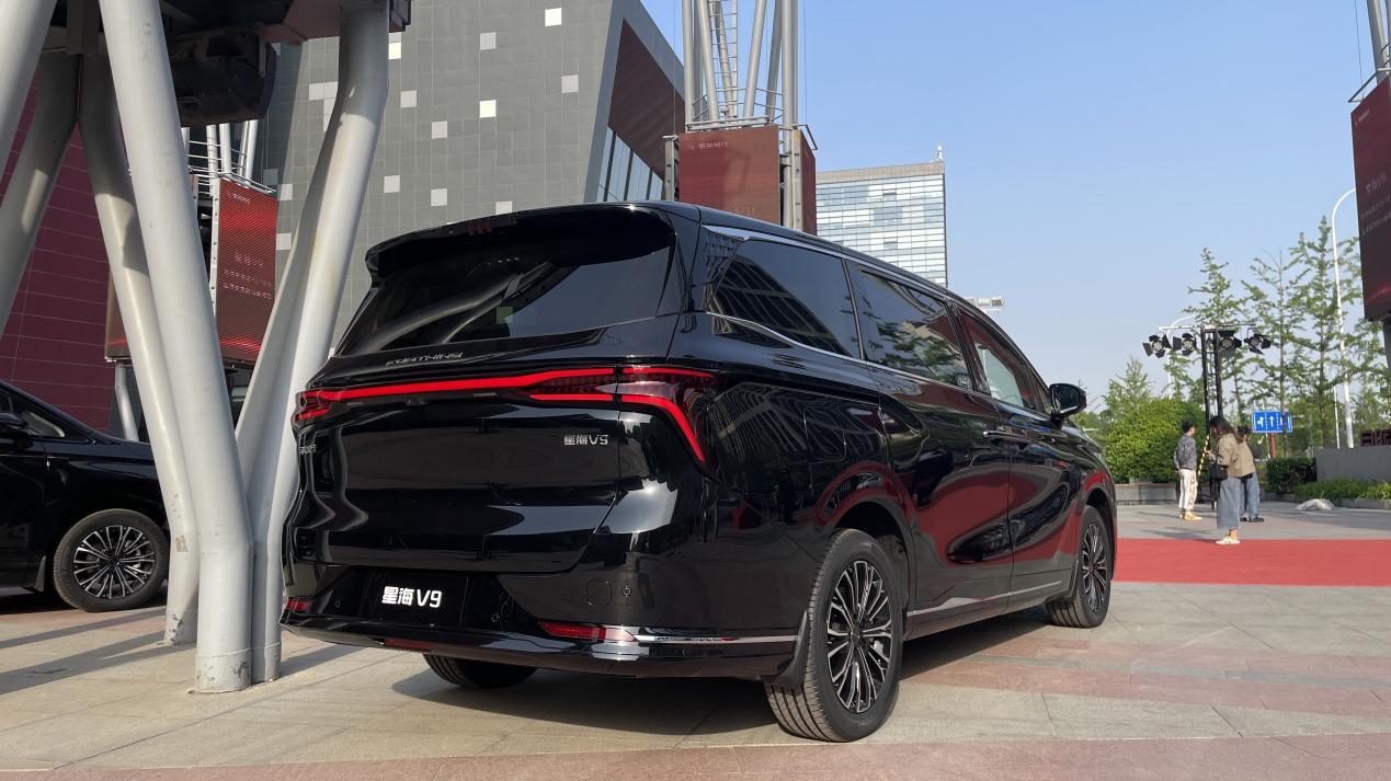 侧面部分,东风风行星海v9则采用了主流的mpv结构,中国结系列车型的长宽高分别为:5251/1920/1810mm,轴距3018mm。一条流畅简洁的线条贯穿车身,配合方正硬朗的轮廓,让车身显得很修长、很有气场。同时,悬浮式车顶、电动侧滑门,匹配上19英寸的多条辐轮圈,具有不错的商务精致气息,又进一步提升了豪华、尊贵气质。