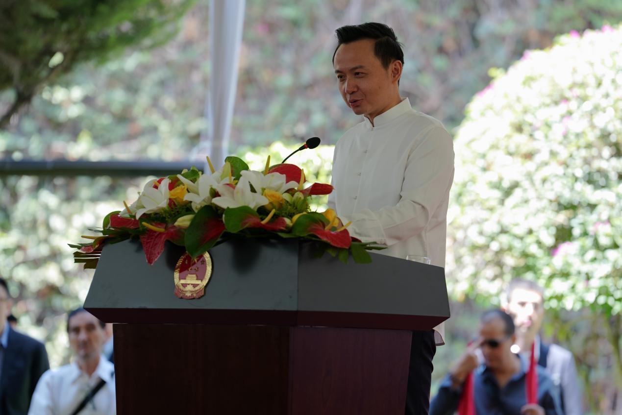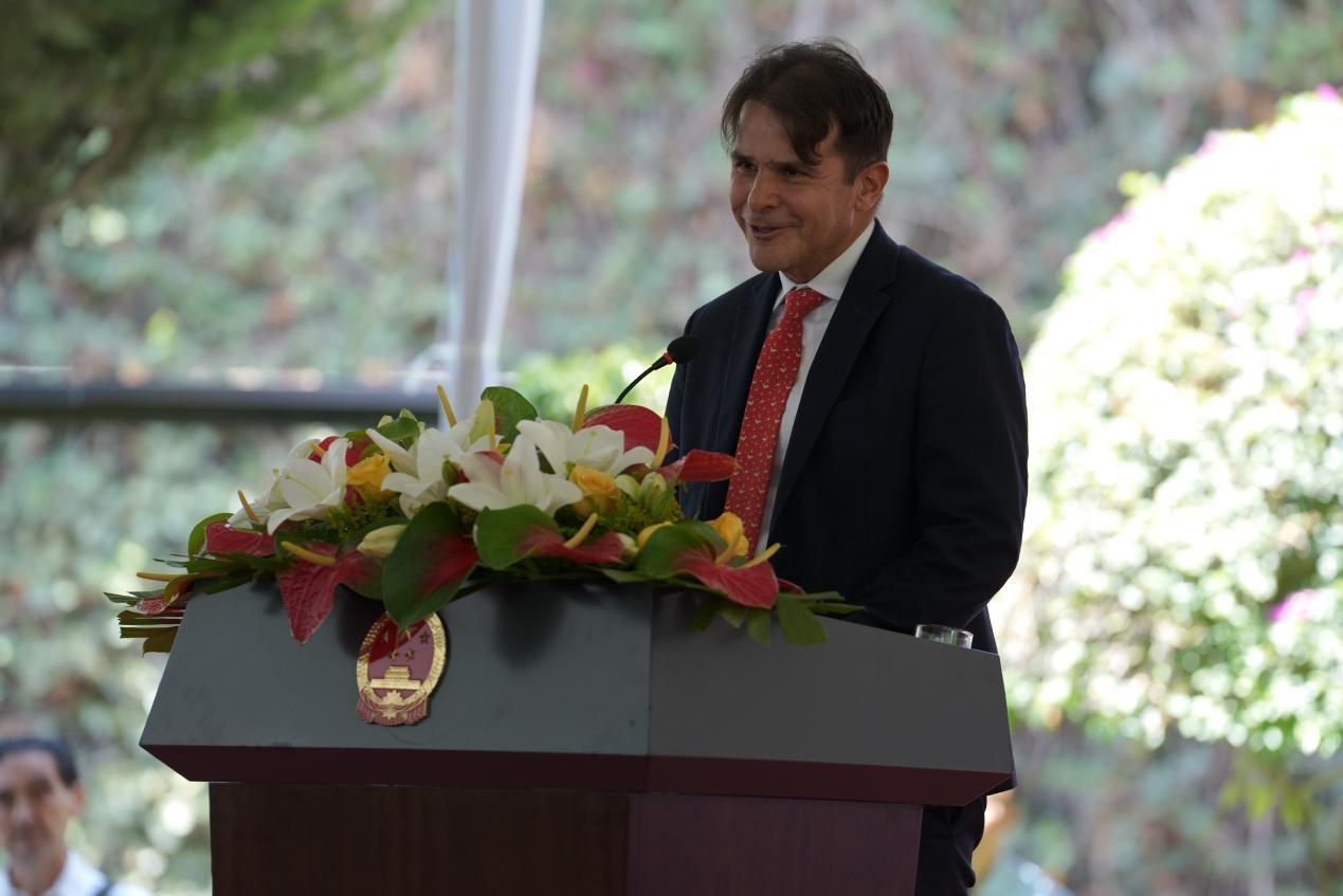 中国驻墨西哥大使张润发表讲话。