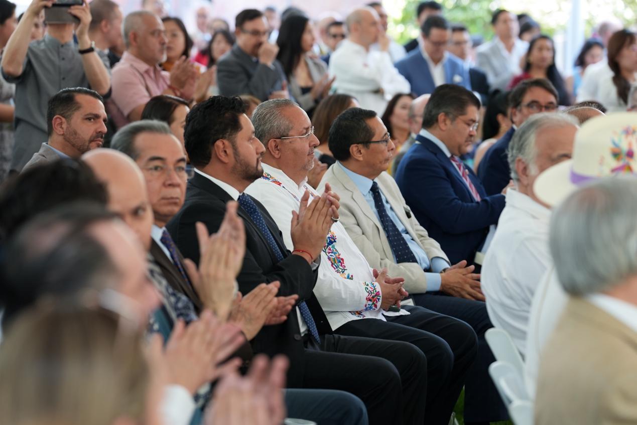 墨西哥外交部亚太司司长冈萨雷斯在讲话中表示,当前墨中关系正处在一个非常好的时间,贸易、投资、多边关系等方面都有着非常密切的合作。中国的龙和墨西哥的金雕都是两国悠久文化的象征,可以说墨中两国在社会、文化和国际事务中都有着诸多相似之处,可以互相理解。在这个动荡的世界中,和谐、尊重和平衡是如此必要,因此文化交流有着独特的意义。