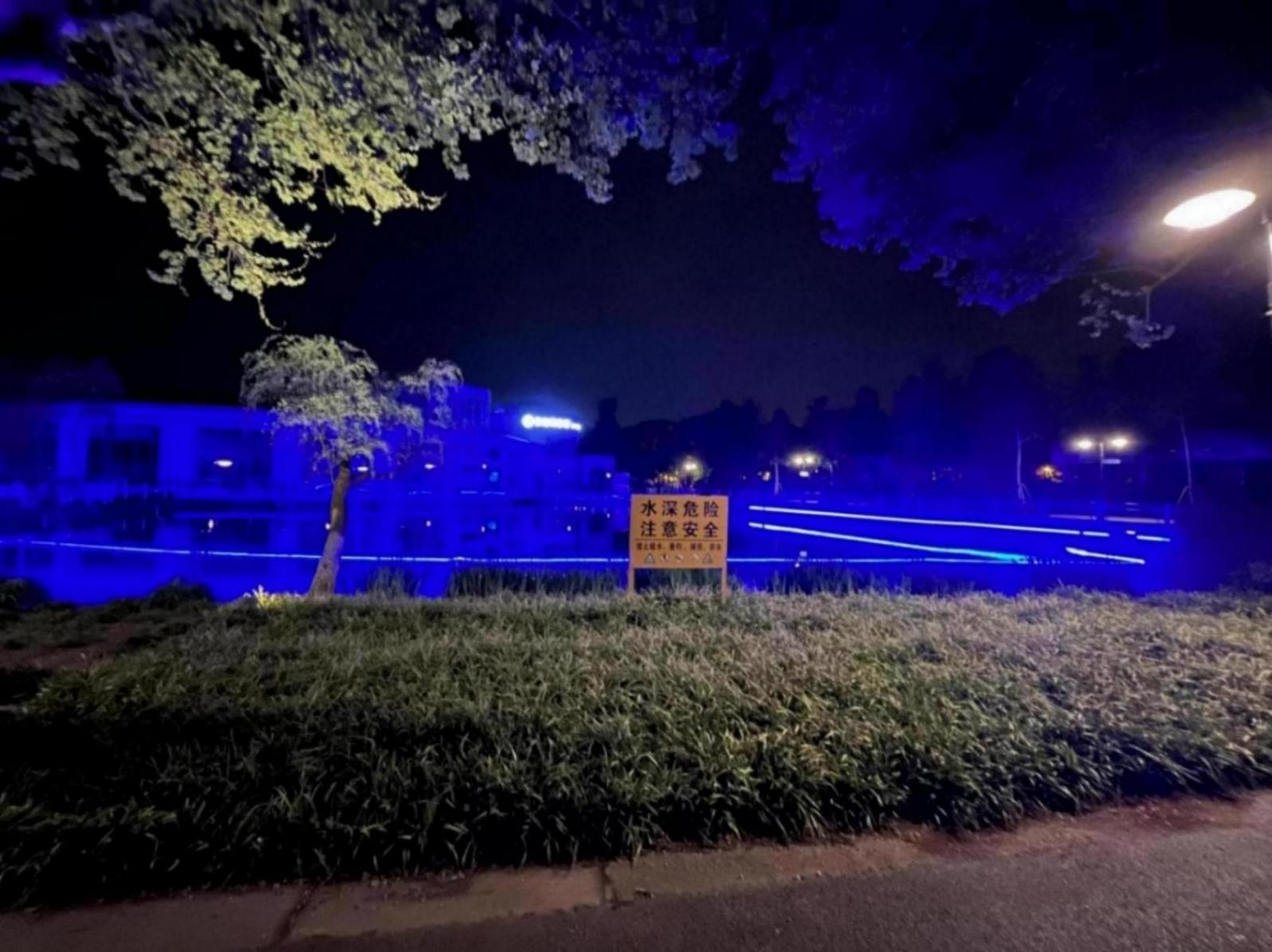 4月18日当晚近11时,臧东灏敏锐地发现,镜天湖上,有一束白光闪过。“估计是偷偷夜钓的人。”臧东灏随即拿起对讲机,通知最近的保安人员过来一起查看。可惜的是,等到工作人员赶到湖边时,疑似垂钓者已经隐入黑幕中。