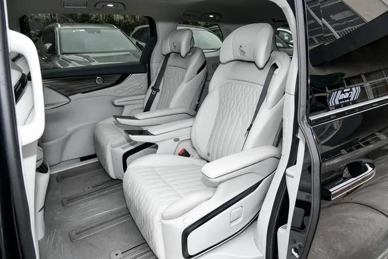 内饰方面,新车搭配三辐式多功能方向盘以及电子换挡机构,科技感十足。此外,新车还将搭载二排豪华航空座椅,采用1020mm二排滑轨,座椅布局灵活多变。新车拥有200mm二中央通道、二三排纵向距离922mm,三排腿部空间非常宽敞。