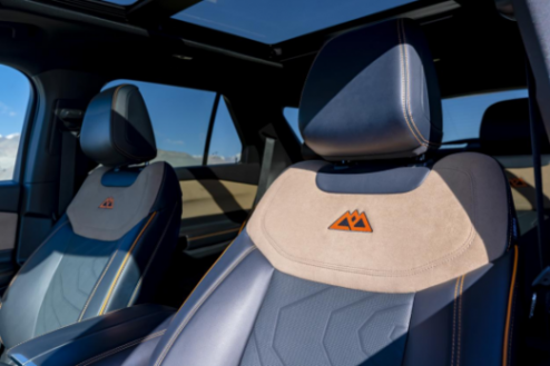 内饰采用墨玉黑与流沙米的撞色设计,定制打孔工艺全粒面真皮和dinamica超纤维环保麂皮带来柔软触感,车内豪华氛围入眼即可见。