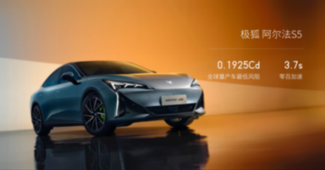 1.4月22日上市的极狐阿尔法s5风阻系数0.1925cd,量产车风阻系数全球第一。