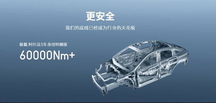 2.极狐阿尔法s车身扭转刚度 60000nm/°,行业最高。阿尔法t 也名列前茅,达到55000nm/°。
