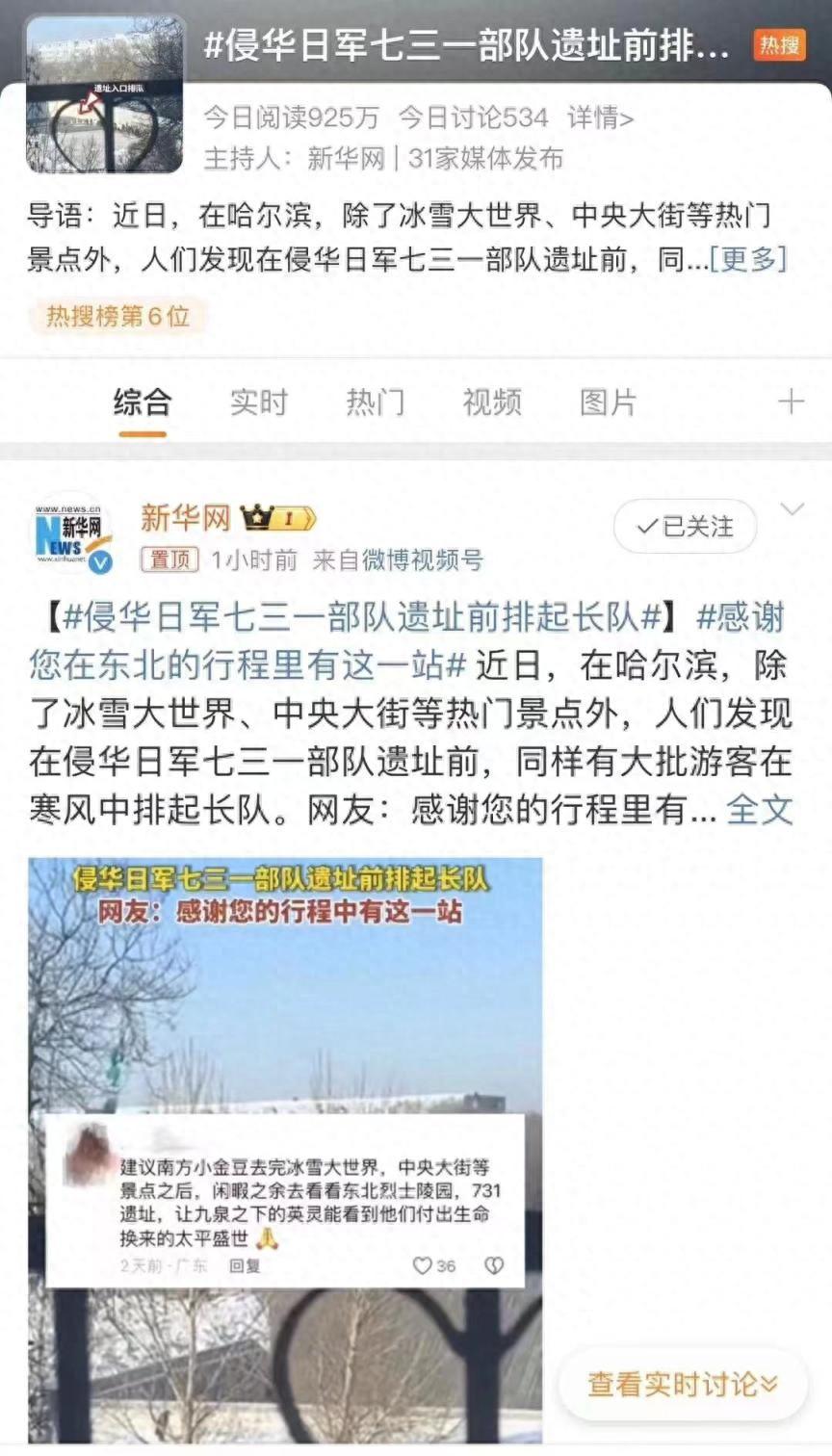 新年伊始,哈尔滨游火爆出圈,话题度拉满。而游客扎堆的,并不只冰雪大世界、中央大街等景点,有媒体关注到,天寒地冻中,侵华日军七三一部队罪证陈列馆前排起了蜿蜒长队。